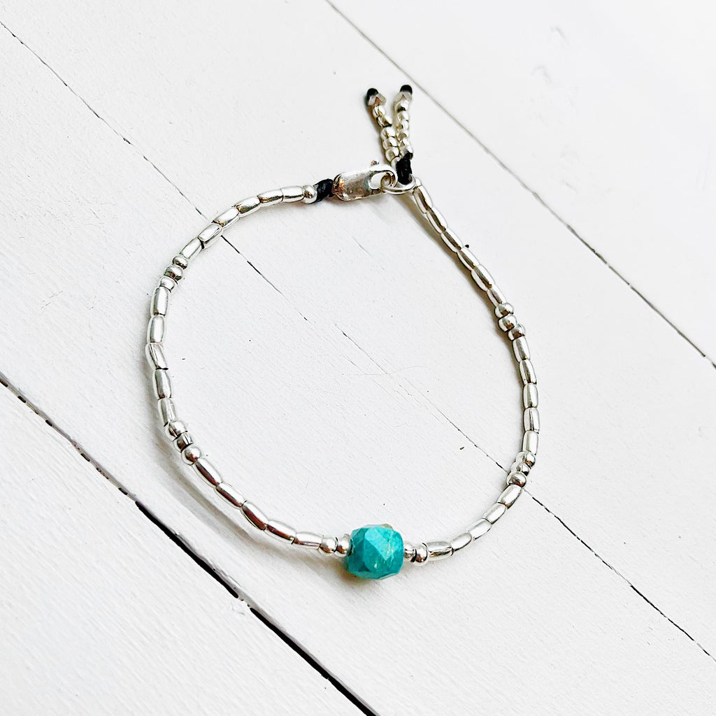 - Beautiful Hill Tribe Silver Rice Bead Bracelet with faceted Turquoise Howlite gemstone.